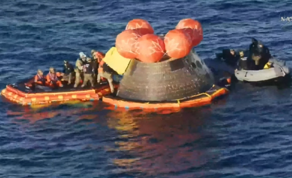 Su nave espacial Orion atravesó la atmósfera terrestre a más de 38.000 km/h, con temperaturas superiores a los 2.700 grados Celsius generadas por la fricción, y amerizó sin problemas en el océano Pacífico, gracias a grandes paracaídas.